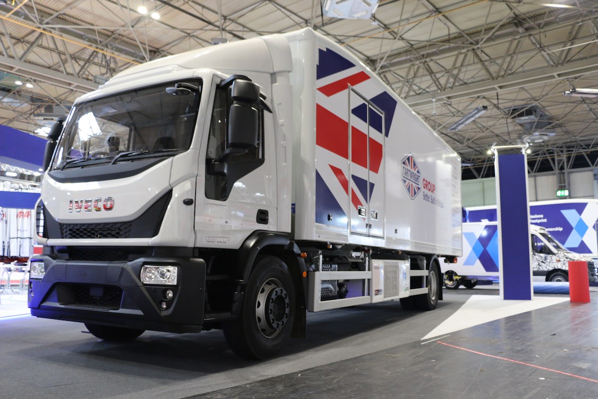 The Cartwright aerodynamic refrigerated body on an Iveco Eurocargo 18-tonne is equipped with twin side doors and undermount fridge to make urban deliveries quieter and easier. Fitted with a one-piece aluminium cant rail, it also has a curved roof at the front to reduce drag.